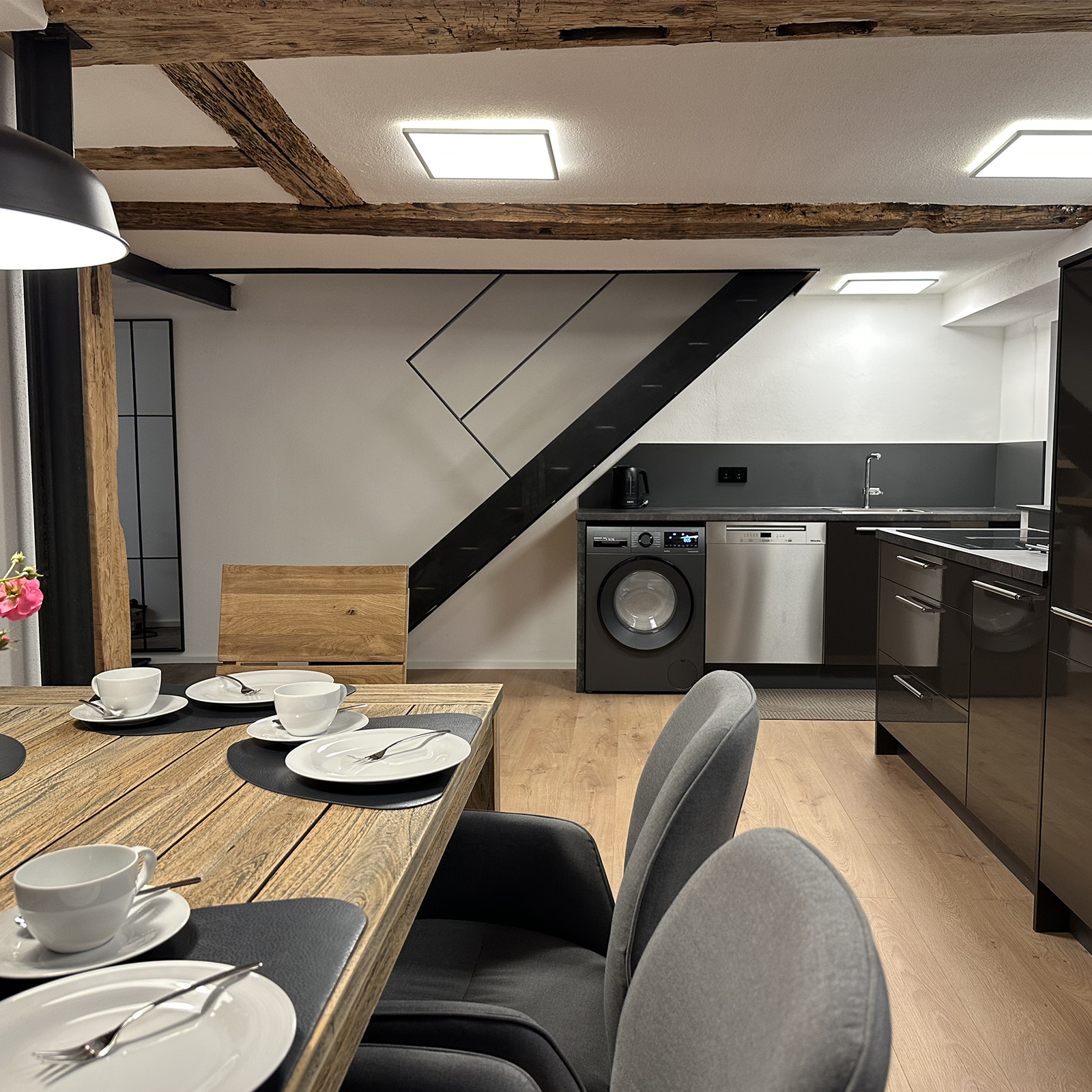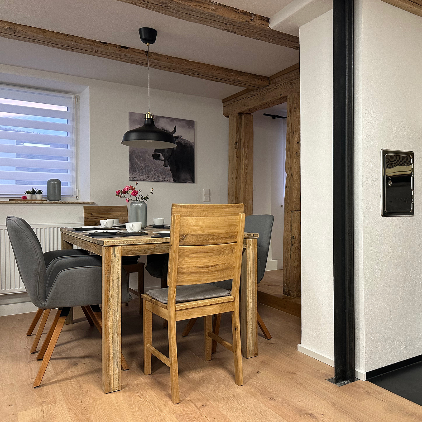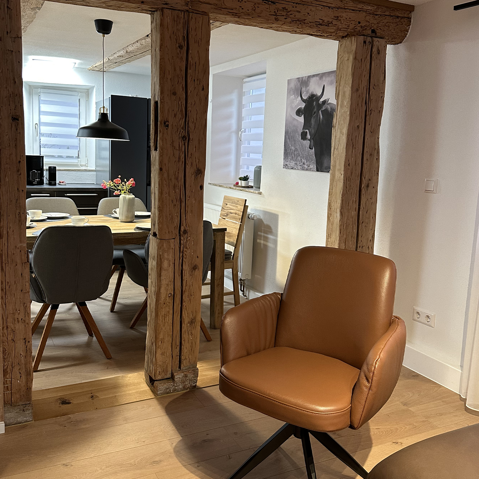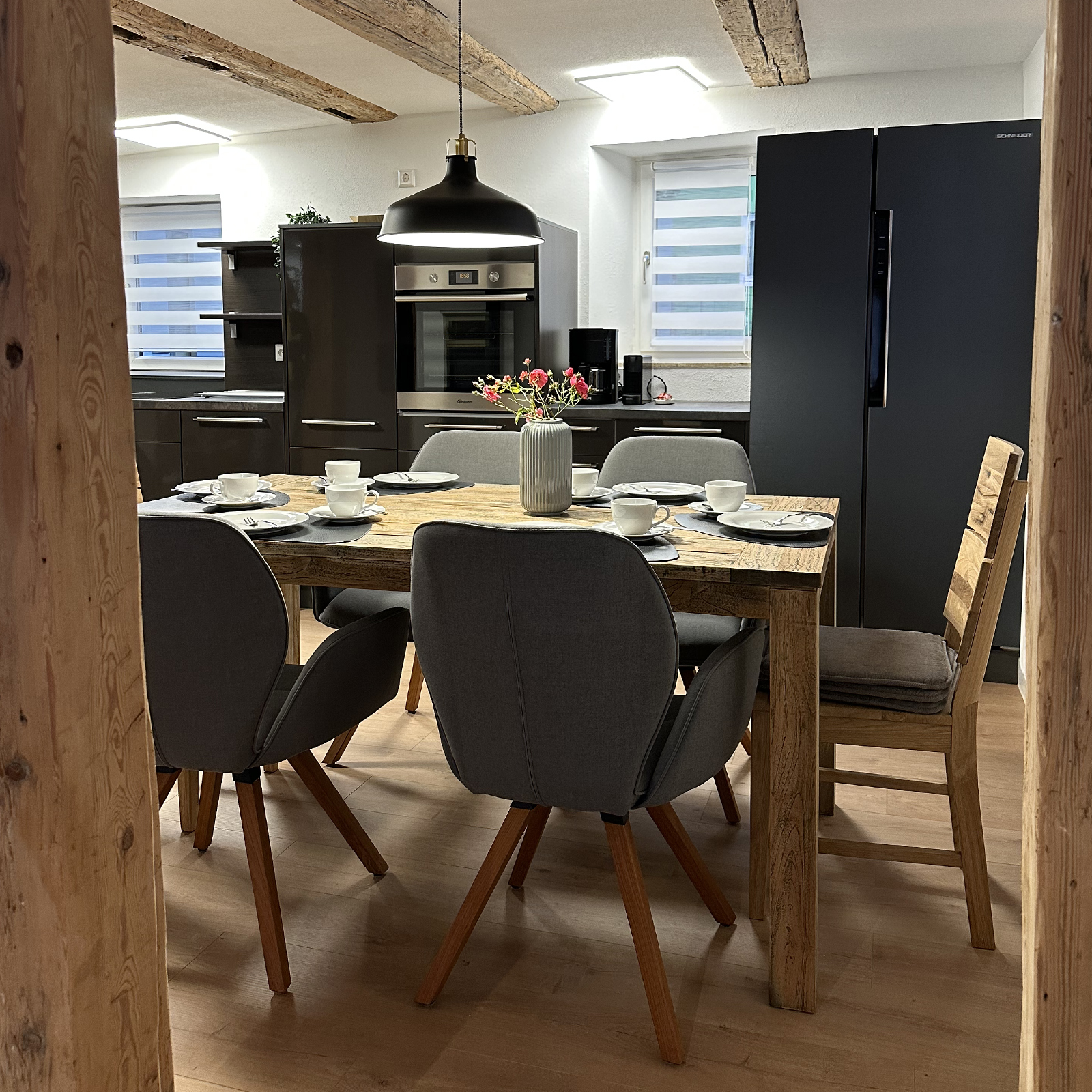 Auf rund 130 m² Wohnfläche bietet das Ferienhaus Platz für bis zu sechs Personen und eignet sich ideal für Familien, Freunde oder Geschäftsreisende, die eine komfortable Ferienunterkunft in Balgheim suchen und eine besondere Atmosphäre zwischen Geschichte und modernem Wohnen erleben möchten.